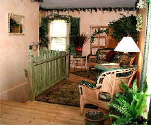 This separate and cozy sitting area is in the attached room of the suite. Relax and get the feeling you are outside on the garden porch.