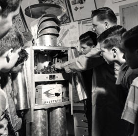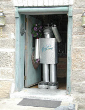 Invented by your host in 1954 during his senior year of High School Said to be the First Wireless - Remote Controlled Robot Thodar© now lives in retirement inside the 1835 Grist Mill He is still operational (but a bit slower) We keep his 6 Volt car battery always charged. Still weighs 282 Pounds ( He has never put on weight.) Spent most of his life in classrooms as a teaching aid!